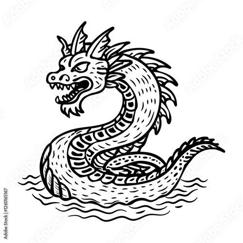 Sea monster icon in sketchy style