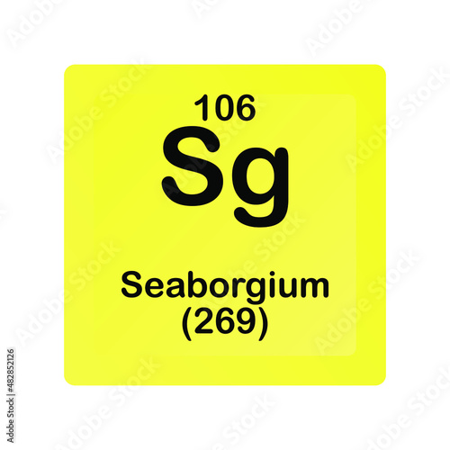 Seaborgium Sg Chemical Element vector illustration diagram, with atomic number and mass. Simple flat dark gradient design for education, lab, science class.