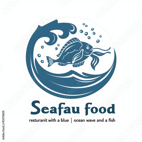 Seafood Restaurant Logo with Stylized Wave and Fish Elements in Blue for a Coastal and Fresh Identity