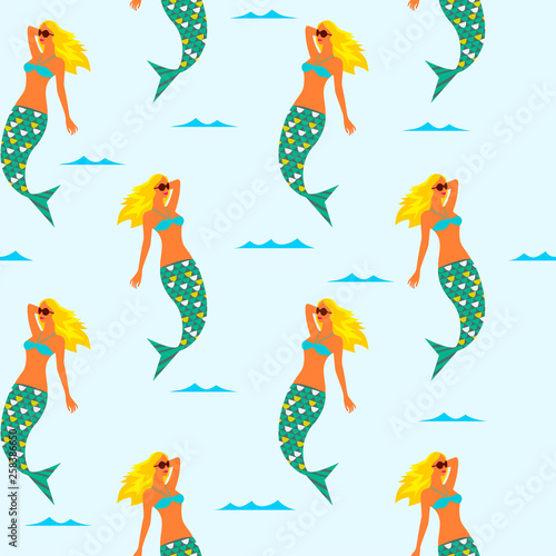 Seamless background with mermaids. Template for fabric, wrapping paper, backgrounds.