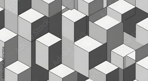 Seamless 3D Geometric Grey Cubes - Abstract Pattern, Modern Background, Minimalist Texture, Digital Design, Architectural Grid, Tech Art