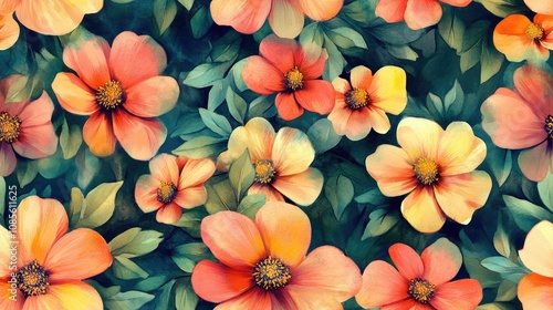 Seamless abstract digital watercolor flower pattern against a soft background ideal for fabric or wallpaper design
