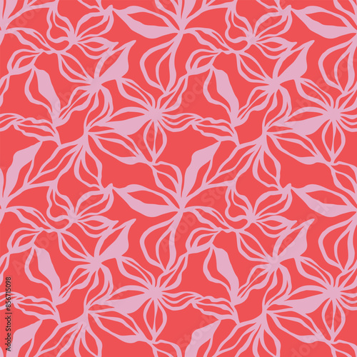 Seamless abstract flower and leaf brush pattern. Floral seamless background.