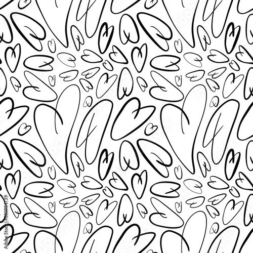 Seamless abstract geometric pattern. Simple background in black and white colors. Hearts. Digital texture. Illustration. Design for textile fabrics, wrapping paper, background, wallpaper, cover.