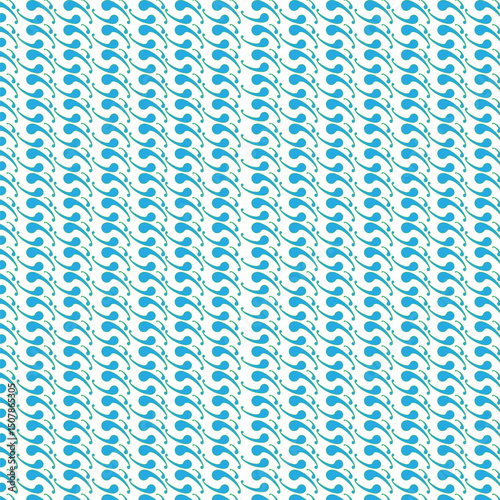 Seamless abstract pattern design featuring repeating teal and green organic shapes on white background.