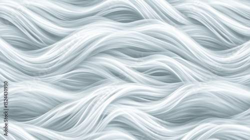 Seamless abstract pattern of fluid wave lines in soft white and gray tones, creating smooth and flowing texture. design evokes sense of calm and movement