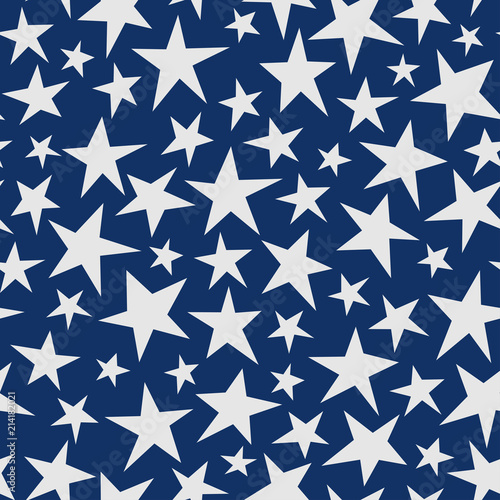 Seamless abstract pattern with big white hand drawn stars on dark blue background. shabby vector