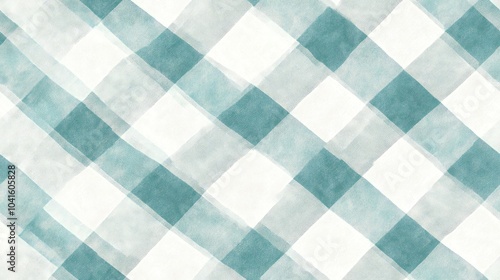 Seamless and repeating textured fabric background in pale teal and white diagonal checkers