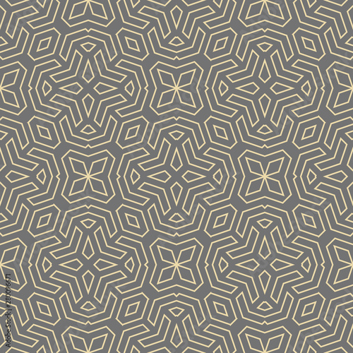 Seamless background for your designs. Modern gray and golden ornament. Geometric abstract pattern