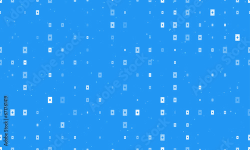Seamless background pattern of evenly spaced white ace of diamond cards of different sizes and opacity. Vector illustration on blue background with stars