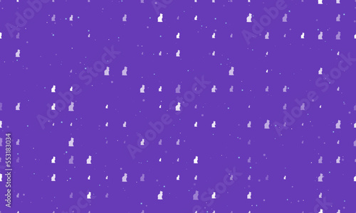 Seamless background pattern of evenly spaced white cat symbols of different sizes and opacity. Vector illustration on deep purple background with stars