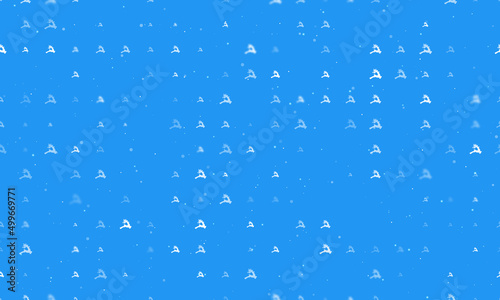 Seamless background pattern of evenly spaced white Christmas deers of different sizes and opacity. Vector illustration on blue background with stars