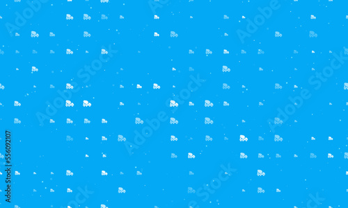 Seamless background pattern of evenly spaced white concrete mixer truck symbols of different sizes and opacity. Vector illustration on light blue background with stars
