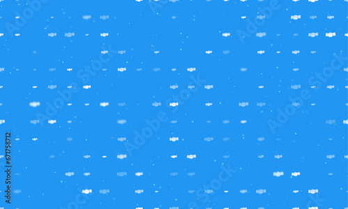 Seamless background pattern of evenly spaced white handshake symbols of different sizes and opacity. Vector illustration on blue background with stars
