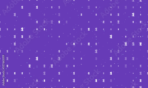 Seamless background pattern of evenly spaced white mouse symbols of different sizes and opacity. Vector illustration on deep purple background with stars