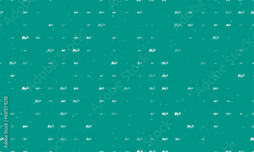 Seamless background pattern of evenly spaced white rhinoceros symbols of different sizes and opacity. Vector illustration on teal background with stars