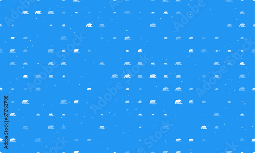 Seamless background pattern of evenly spaced white wild bear symbols of different sizes and opacity. Vector illustration on blue background with stars