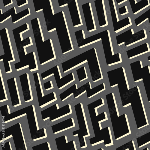 Seamless black and white 3D geometric pattern tribal style on grey.