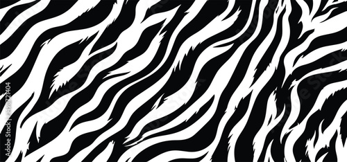 Seamless black and white tiger fur texture vector illustration. Abstract striped animal print pattern ideal for textile, fashion, background, wallpaper, or digital design.