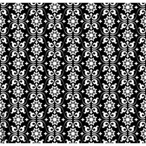 Seamless black background with white pattern in baroque style. Vector retro illustration. Ideal for printing on fabric or paper.