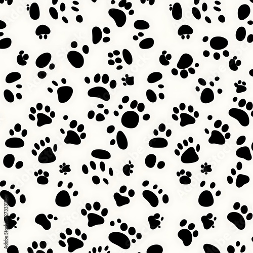 Seamless Black Doodle Paw Prints Pattern Background ,Cute Puppy Paw Print Design for Fabrics, Wallpapers, and Digital Art
