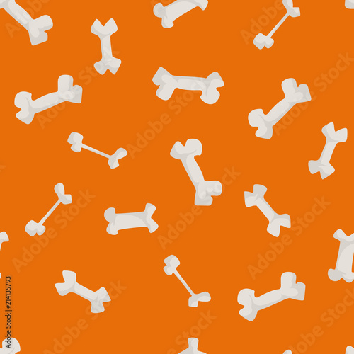 Seamless bones pattern isolated on orange background. Vector cartoon illustration. Pets food texture.