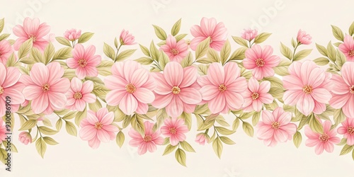 Seamless border with delicate pink flowers, perfect for a floral decorative pattern , pink, flowers, border, seamless