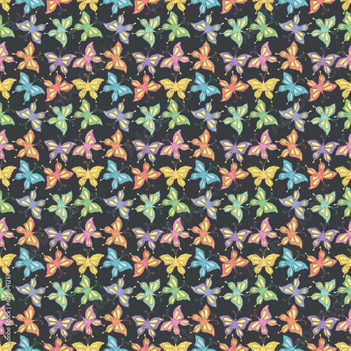 Seamless butterfly pattern. Drawn butterfly background