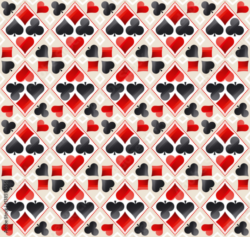Seamless casino gambling poker background with red and black symbols, vector illustration. Ideal for printing onto fabric and paper or scrap booking