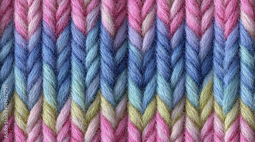 Seamless close-up texture of colorful knitted yarn fabric pattern, soft wool material background for textile concepts