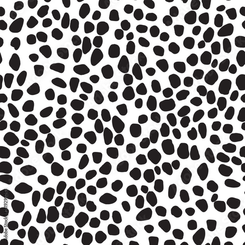 Seamless Dalmatian-Inspired Black and White Spot Pattern for Textile Print on Fabric