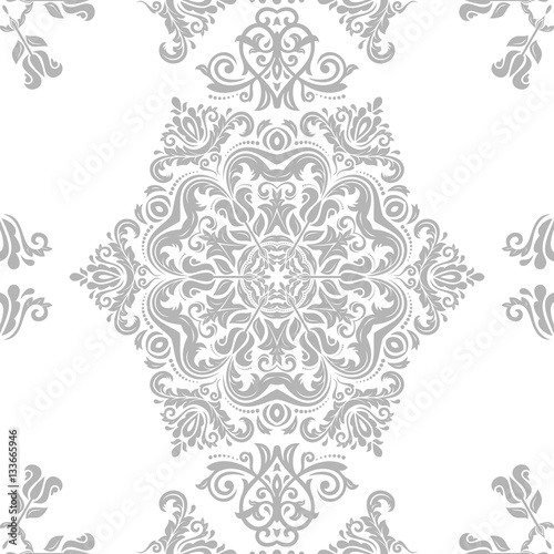 Seamless damask pattern. Traditional classic orient ornament. Light silver pattern