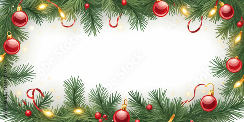 Seamless decorative christmas border with coniferous branches and garlands of christmas lights on transparent background