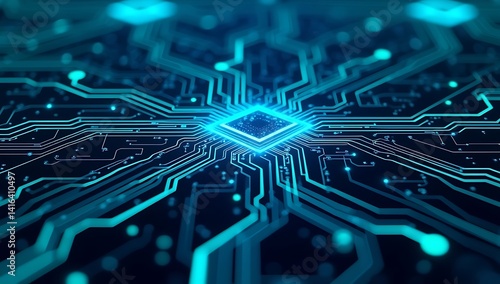 Seamless digital circuit board background in cool blue and neon tones. Tech-inspired, futuristic layout perfect for technology themes, coding, and digital interfaces.