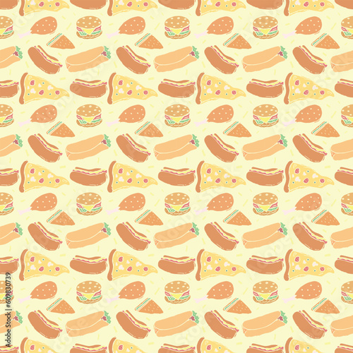 Seamless fast food pattern. fast food background. Doodle fastfood icons. Drawn food pattern
