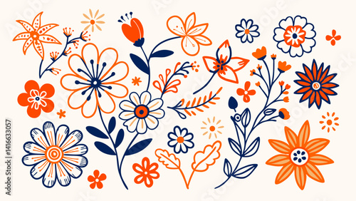 Seamless floral pattern with colorful flowers and leaves creates a vibrant spring nature design for wallpaper and textile decoration