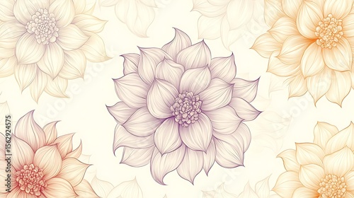 Seamless floral pattern with pink flowers and decorative botanical elements