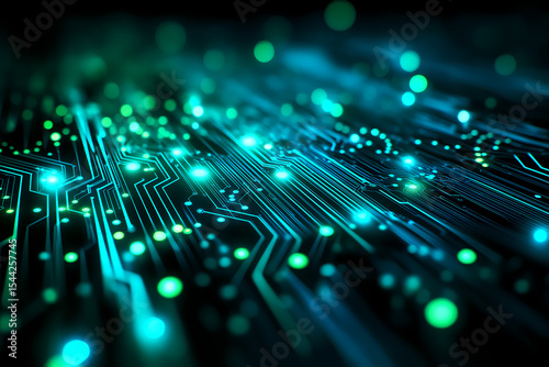 Seamless Futuristic Neon Glowing CPU Circuit Board Background
