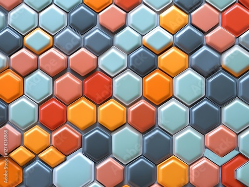 Seamless geometric hexagonal tile texture with sharp angles and vibrant colors