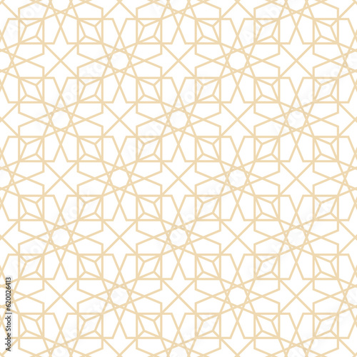 Seamless geometric pattern. Islamic pattern. arabic, east ornament, indian ornament, persian motif, 3D. Ramadan Kareem gold greeting card, banner. geometric ornate, shining vector illustration.