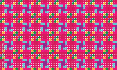 Seamless geometric pattern with colorful floral theme. Perfect for printing, design and textiles