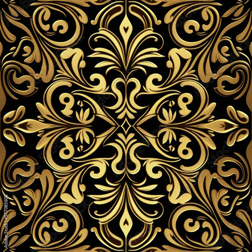 Seamless golden damask pattern background, vintage, rich ornament, luxury, AI generated
