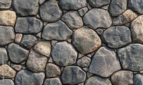 Seamless gray cobblestone wall or road background texture. Tileable grungy natural rock and stone shaped path or walkway repeat surface pattern. A high resolution construction backdrop