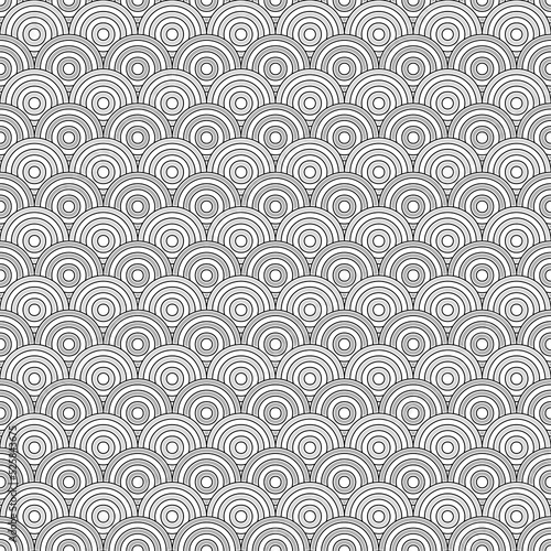Seamless japanese pattern with scales. Fish scale wallpaper. Asian traditional ornament with repeated scallops. Repeated circles and semicircles background. Vinyl motif. Surface design. Vector art.