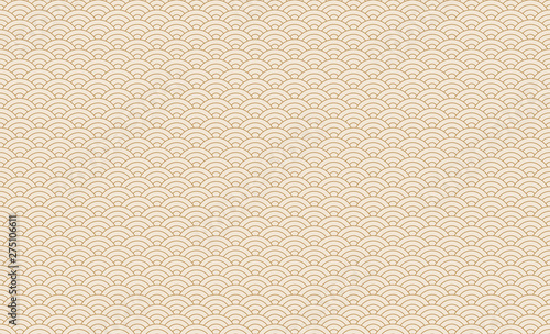 Seamless japanese wave pattern. Repeating ocean water curve chinese texture. Gold and white line art vector illustration. Vintage geometric shape background. Retro sea ornament