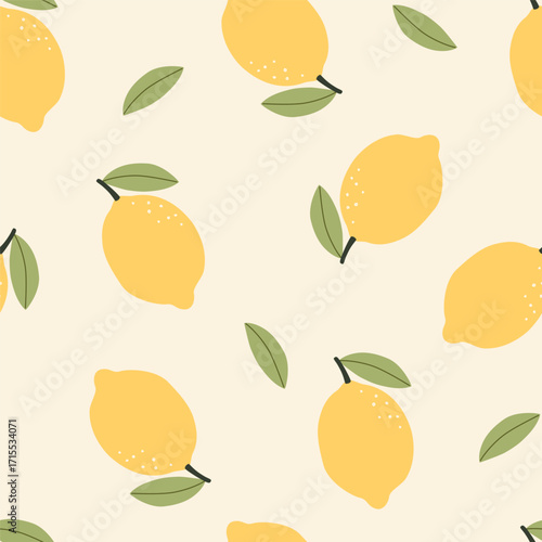 Seamless lemon pattern. Vector illustration for printing. Cute baby background. Yellow background