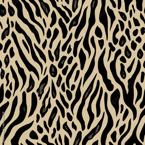 Seamless leopard, tiger, zebra texture, mixed animal print.