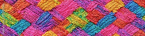 Seamless Linen Knit Textile Background with Colorful Geometric Patterns And Shapes