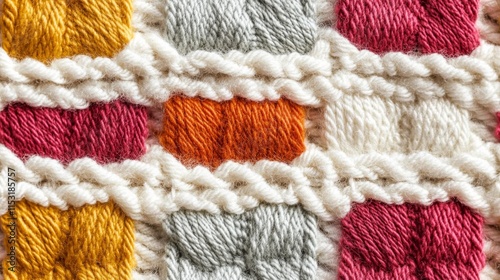 Seamless Linen Knit Textile Background with Colorful Geometric Patterns And Shapes