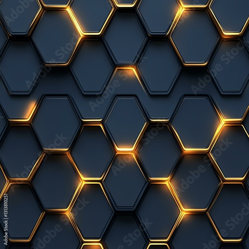Seamless Luxury & Metallic Patterns Gold Foil Geometric hexagon pattern with glowing accents.